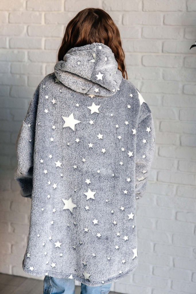 Kids Oversized Hoodie Blanket in Grey Stars