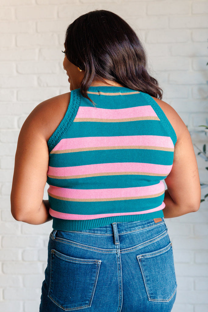 You'll be ready for a stylish journey in our Scholarly Pursuits Knit Striped Tank. This sleeveless top features a cozy striped sweater knit, ribbed round neckline, and banded armholes and hemline. Perfect for any adventure whether it be academic or just plain fun!
